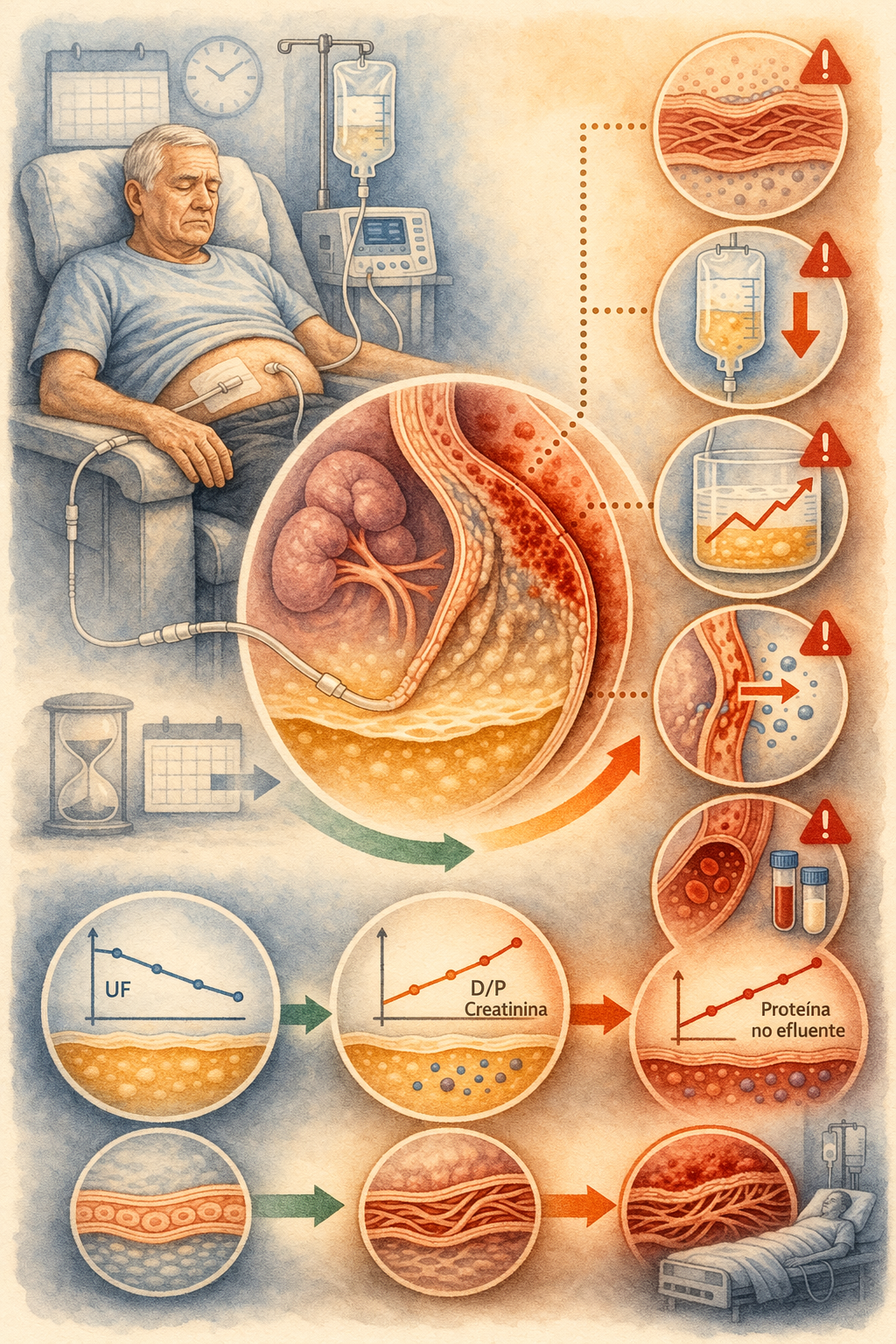 Com o uso contínuo, essa membrana é exposta a soluções com glicose, processos inflamatórios e episódios de peritonite, fatores que podem provocar espessamento, fibrose e perda da capacidade de filtração.