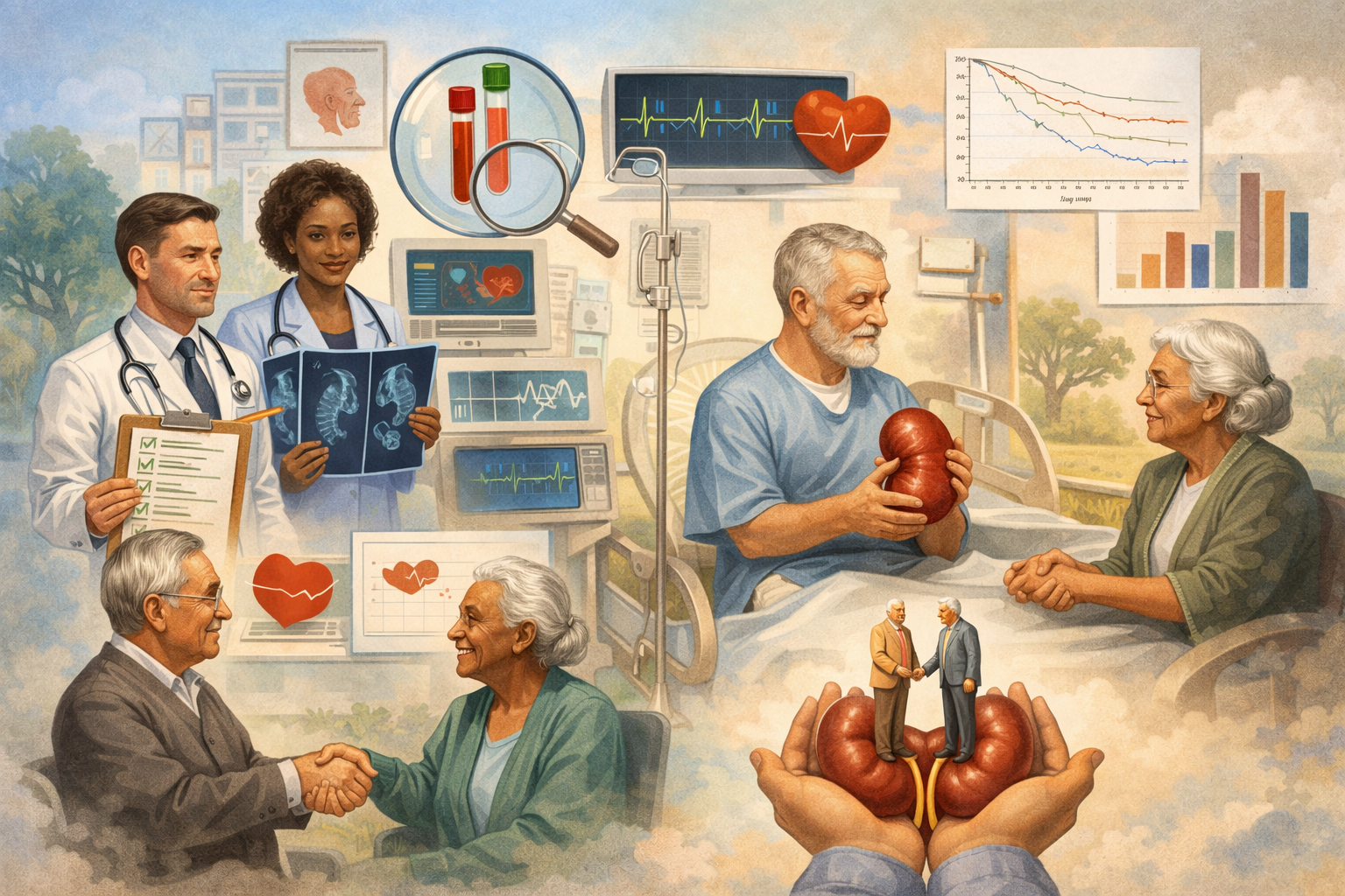 O envelhecimento da população mundial tem levado a um aumento significativo no número de idosos com doença renal crônica (DRC) em estágio avançado. Como consequência, cresce também a quantidade de pacientes idosos em diálise e na fila para transplante renal. Durante muitos anos, a idade avançada foi considerada uma contraindicação relativa para o transplante, por medo de complicações cirúrgicas, rejeição e menor expectativa de vida. No entanto, avanços na medicina, na seleção de candidatos e no manejo pós-operatório têm mostrado que o transplante renal pode ser uma opção segura e benéfica para muitos idosos.